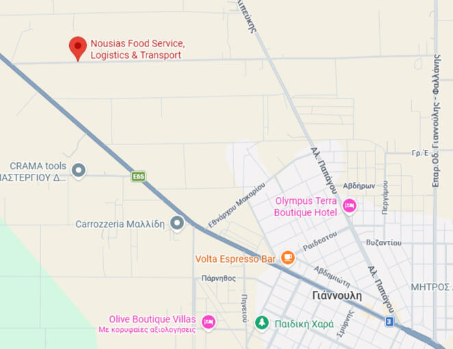 Η εταιρία μας καλύπτει ένα ευρύ δίκτυο στη Θεσσαλία, Πιερία, Θεσσαλονίκη και Αττική. Για την άρτια και ασφαλή υποστήριξη του έργου αυτού, αλλά και την τήρηση των αυστηρότερων ευρωπαϊκών μέτρων διαθέτει ιδιόκτητο στόλο αποτελούμενων:> 25 φορτηγά ψυγεία συντήρησης & κατάψυξης